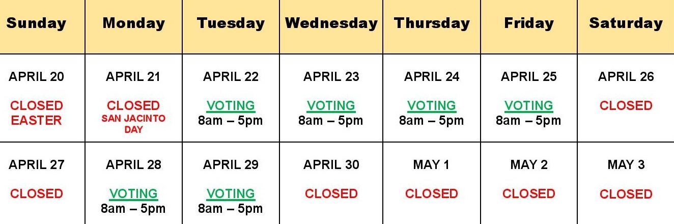 Tuesday, April 22, 2025 – First day of Early Voting